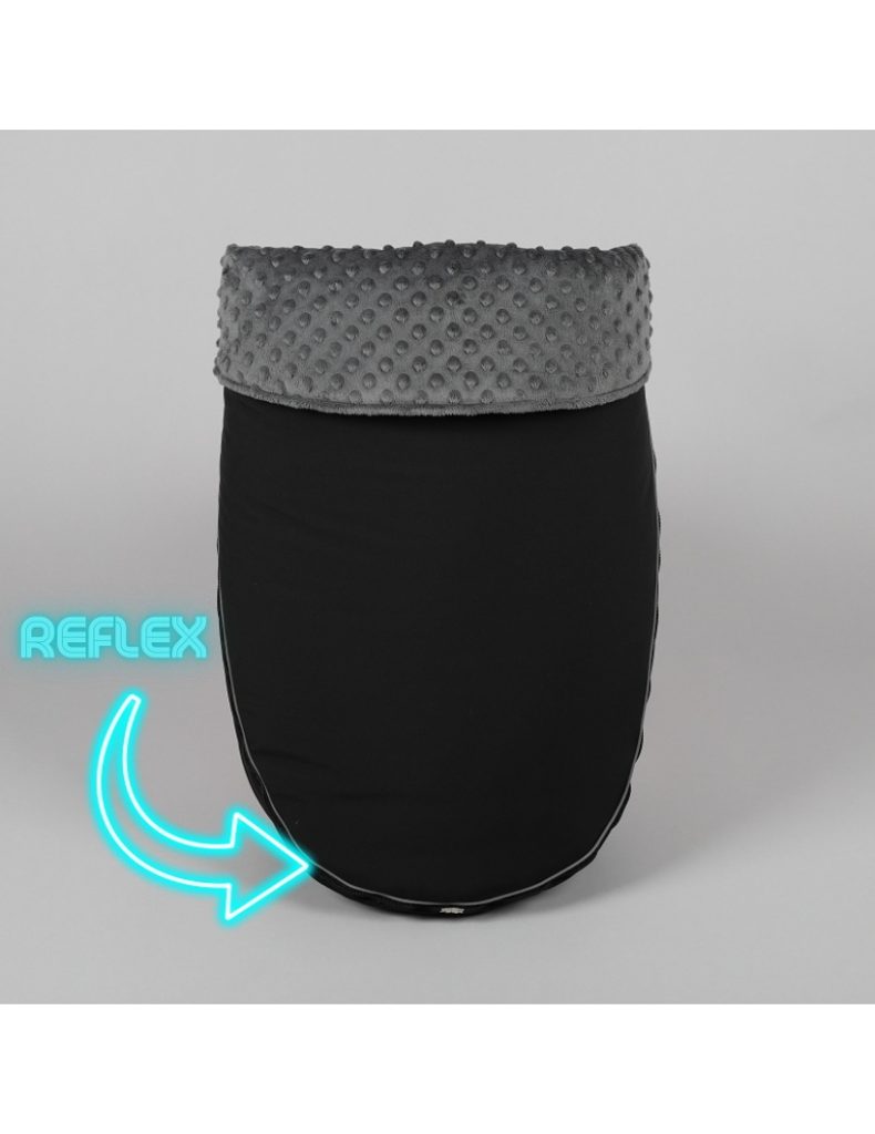 Dole u nožiček je softshell pro snadnou údržbu. Promyšlený tvar lemu nánožníků poskytuje dostatek prostoru na nožičky i v zimních botách. Nánožník má dole kapsu a lze s ním i napolohovat nožičky do lehu. Je zateplený vatelínem a dopřává tak dětem komfortní teplo při jízdě v kočárku. Při stažené stříšce a zvednutém kšiltu do kočárku vůbec nefouká.
