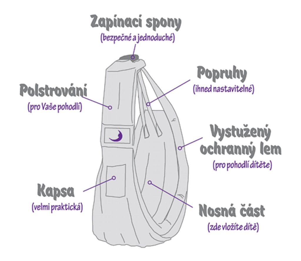 Svým stylem se podobá houpací síti, je perfektně tvarovaný, aby byl dokonalou podporou pro vyvíjející se záda Vašeho miminka a zárověň poskytuje nezbytnou blízkost a propojení mezi dítětem a rodičem.