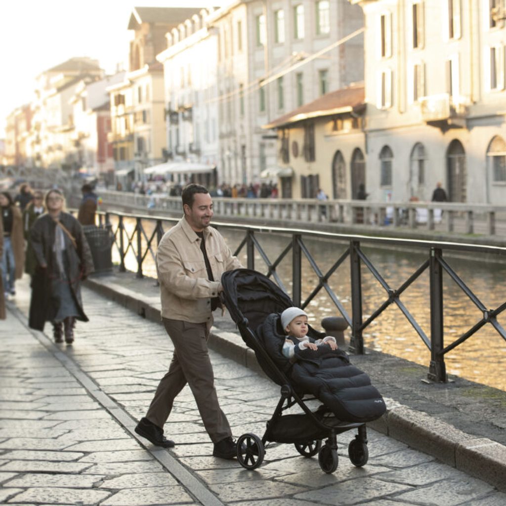 Kočárek je vyroben z materiálů splňujících standard OEKO-TEX®, bouda je voděodolná s ochranou UPF 50+, a luxusní kožená rukojeť dodává kočárku elegantní vzhled. Součástí balení jsou také pláštěnka a taška pro přenos složeného kočárku.