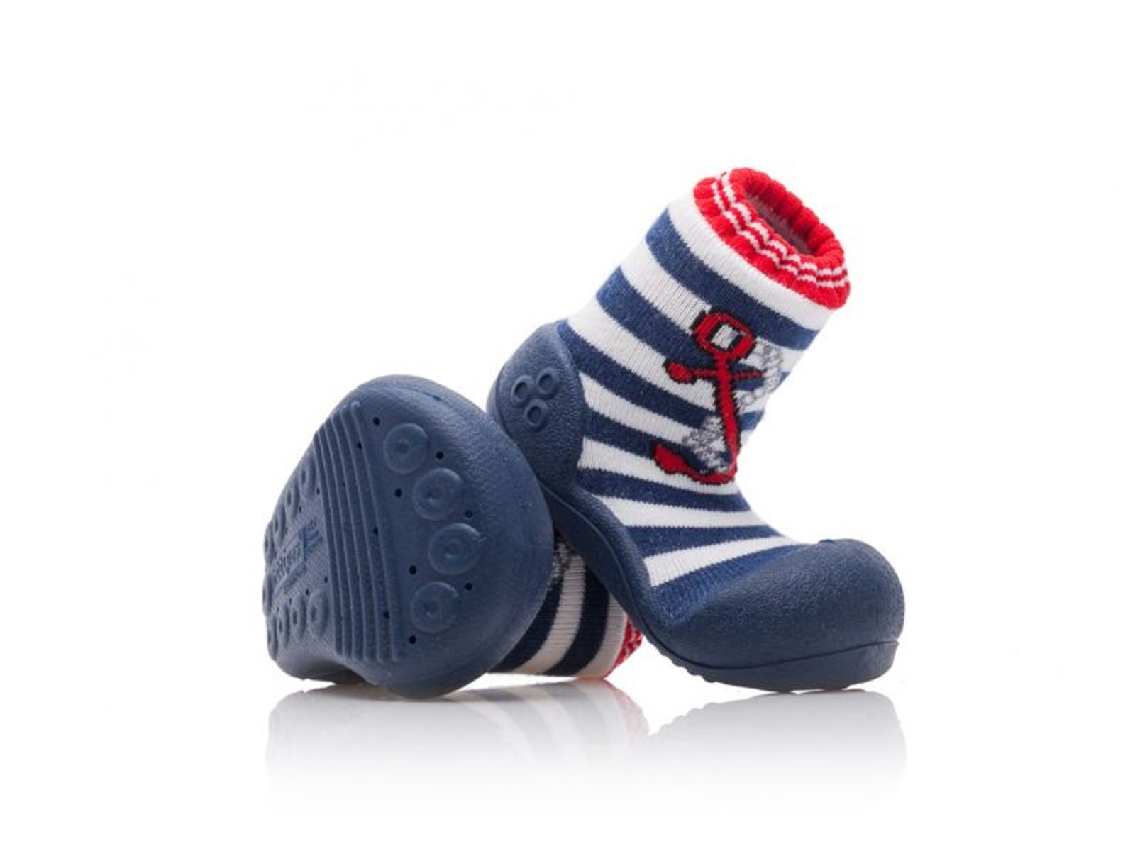 Attipasky Marine jsou speciálně připravené pro statečné námořníky, kteří mají rádi dobrodružství a nové výzvy. S tmavou podrážkou vydrží zábavu v písku, ve vodě a na louce plné ranní rosy.