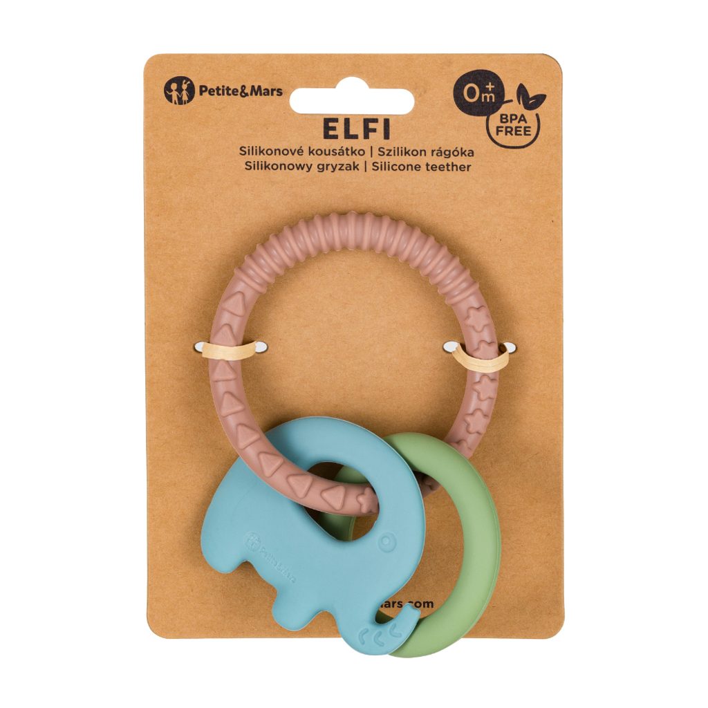 Jak Elefi pomáhá při prořezávání zoubků? Jemně masíruje dásně, zmírňuje bolest a stimuluje správný vývoj čelisti díky různorodým povrchům a texturám. Zchladit v chladničce pro extra úlevu.