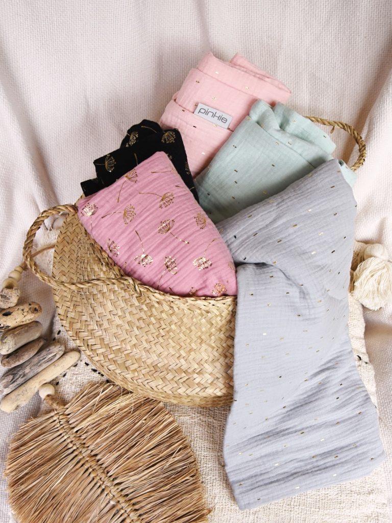 Použití: Univerzální – ideální do kočárku, postýlky, na kojení, jako přebalovací podložka nebo jako lehká zavinovačka.