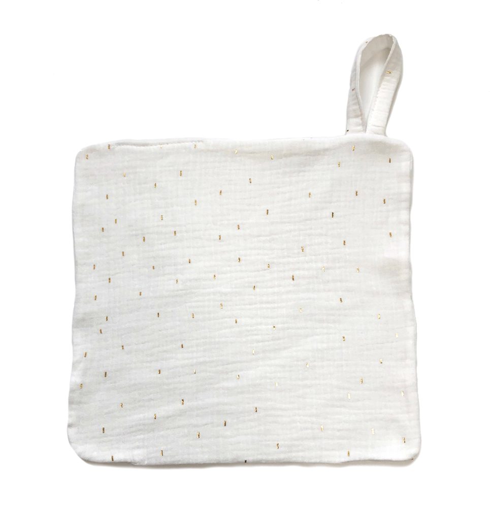 Mušelínová žínka se zlatým potiskem Praktická a jemná žínka z kvalitního bavlněného mušelínu. Vhodná pro každodenní péči o miminko. Využití: pro jemnou hygienu… Zobrazit více