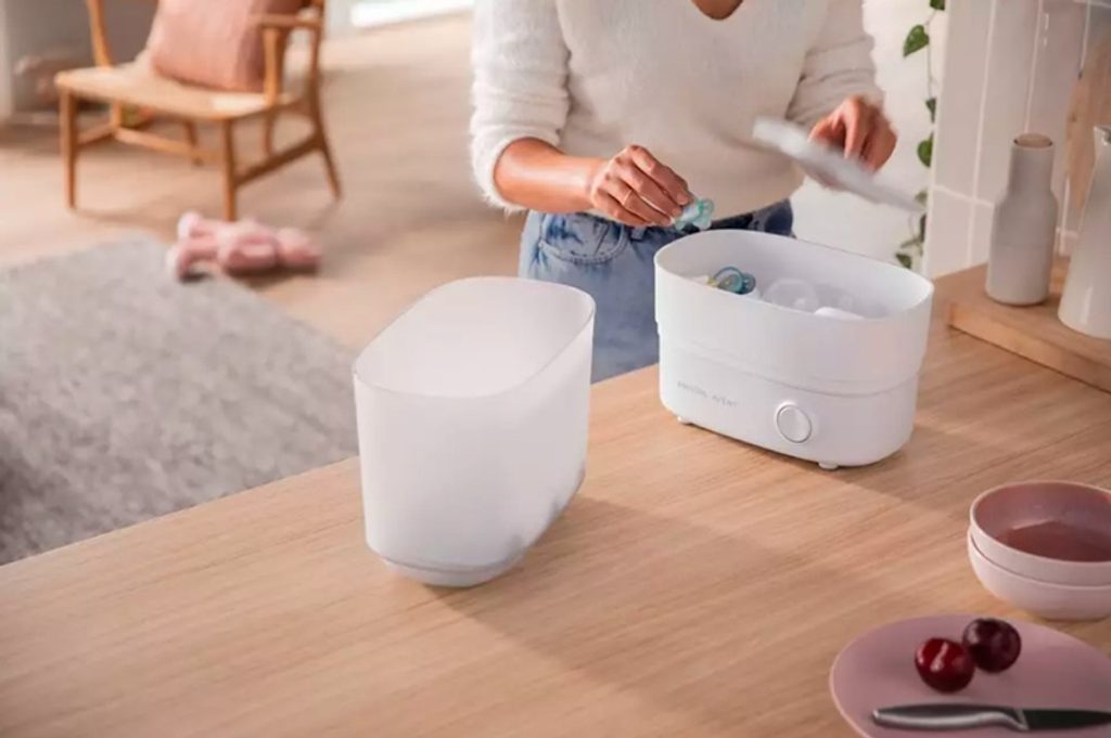 Sterilizace a uložení. Úzký, ale prostorný sterilizátor lahví je rychlý a účinný, zabíjí 99,9 % bakterií. Vlastnosti: - Nastavitelná velikost umožňuje dokonalé přizpůsobení předmětům, které potřebujete sterilizovat. - Mimořádně rychlý a bezpečný. - Vysterilizuje až 6 lahví AVENT za pouhých 10 minut a automaticky se vypne. - Intenzivní teplo z horké párky zničí během chvíle škodlivé bakterie. - Lze sterilizovat odsávačku mateřského mléka včetně příslušenství. - Nádobka na odkapávání chrání výhřevnou desku a snižuje tak riziko nepříjemného zápachu. - Pokud víko není otevřeno, obsah zůstane sterilní po dobu 24 hodin
