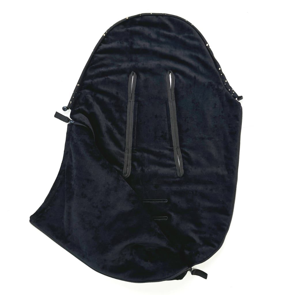 Díky podélným otvorům fusak hezky sedí do všech kočárků nebo autosedaček na trhu, instalace je velmi snadná. Spodní dírky u fusaku je nutné si prostřihnout (volte tu dírku, která se více hodí).