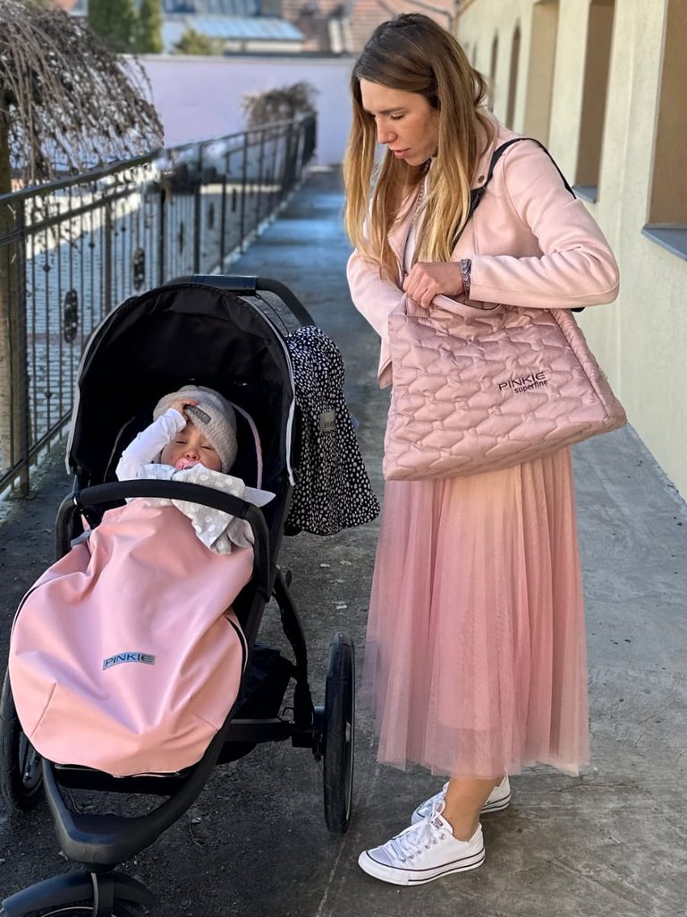 Pokud budete tašku používat ke kočárku, doporučujeme objednat také karabinky na připevnění, nejsou součástí tašky: https://www.pinkieshop.eu/uchyty-karabiny-na-tasku-ke-kocarku-black/