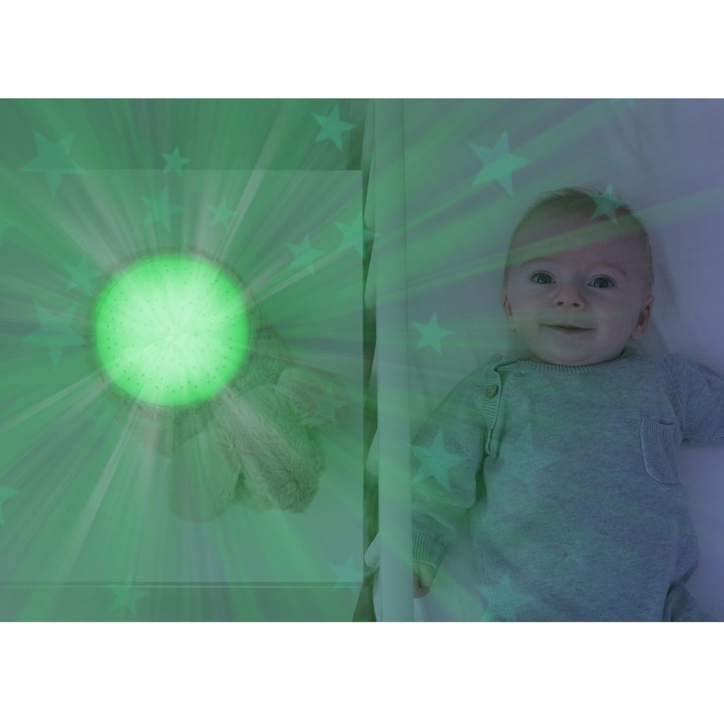 Králíček RUBY je projektor, který promítá magickou noční oblohu na strop pokoje ve čtyřech barevných režimech: oranžové, modré, zelené nebo multi-barevné.