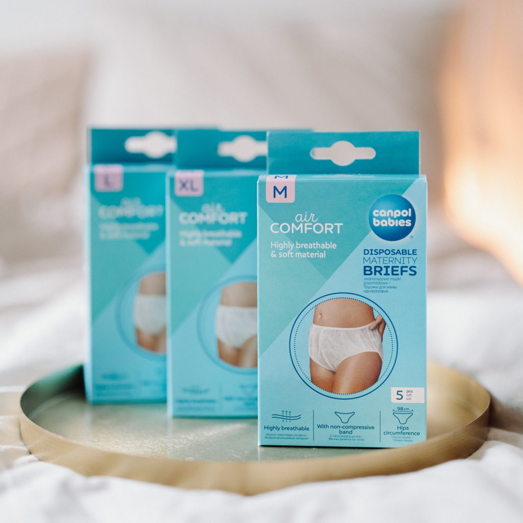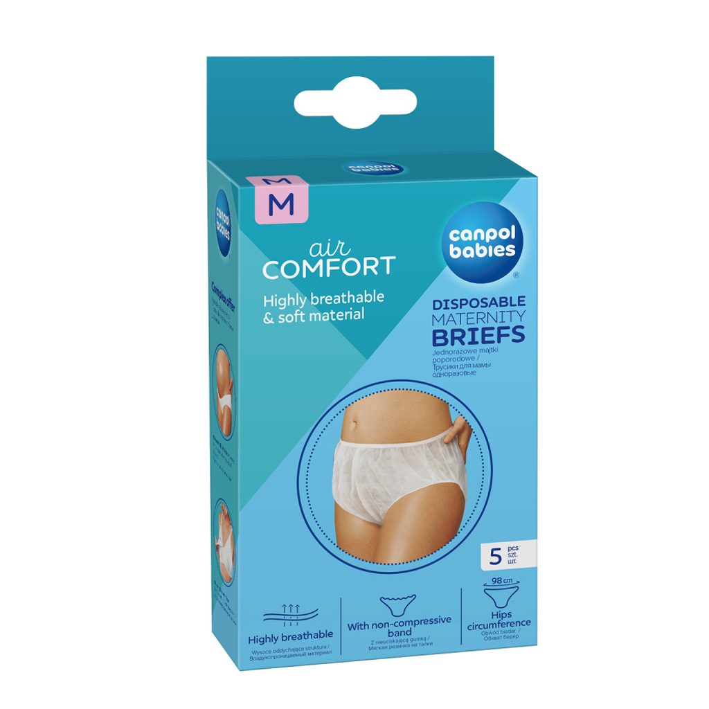 Jednorázové hygienické kalhotky jsou určeny k použití v období po porodu. Jsou vyrobeny z měkkých, jemných vláken, které nedráždí pokožku a dobře propouští vzduch. V pase a kolem nohavičky jsou zakončeny jemnou gumou. Z hygienických důvodů je každý kus zabalen zvlášť. Dodávají se ve třech rozměrech: M/L, L, L/XL (velikost je uvedena na obalu).