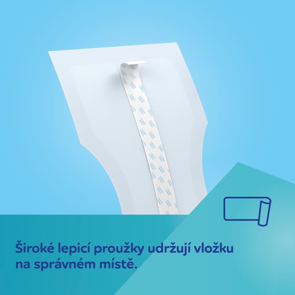 Fixované - Široký samolepící pásek umístěný po celé délce udržuje vložku na správném místě.