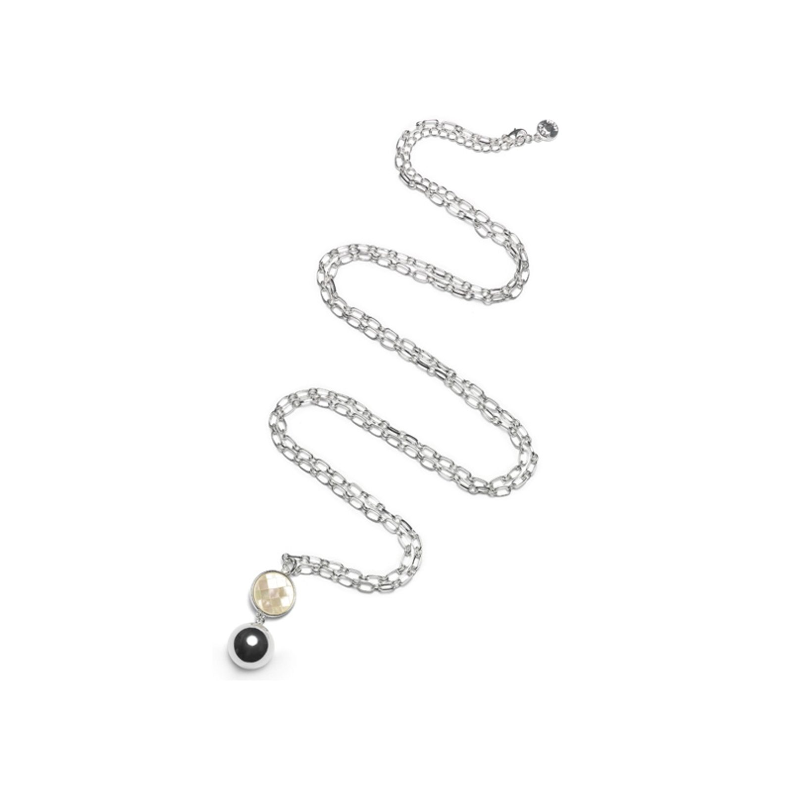 Barva bílá/stříbrná, materiál kov/perla, délka 120 cm + 10 cm prodloužení , váha 42 g.