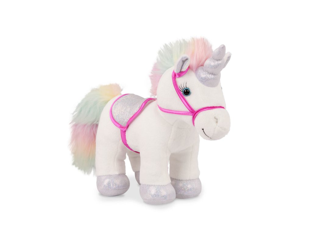 Pohádkový plyšový jednorožec v kabelce s krásným potiskem je vždy připravený na mazlení i na procházku. Miluje vyčesávání své hebké hřívy hřebínkem a díky kabelce si jej vaše dítě může vzít kamkoli. Kabelka má postranní otvory, aby jednorožec při přenášení viděl na svět.