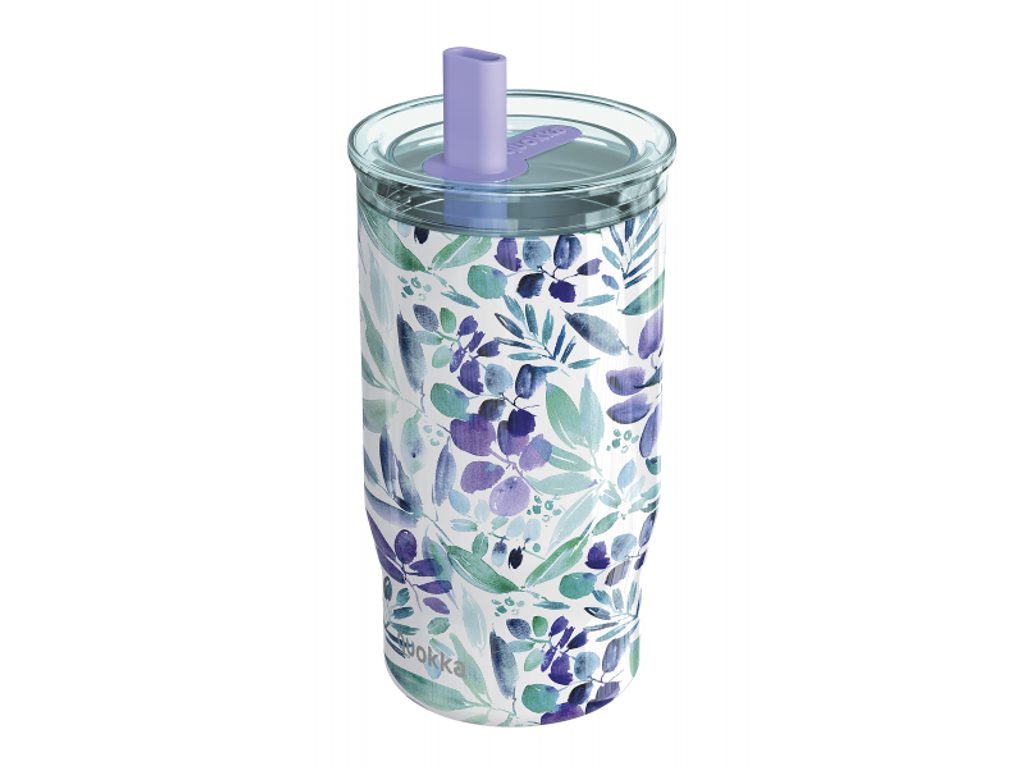 Quokka Nerezový termohrnek s brčkem Mist Violet Blooms 720 ml