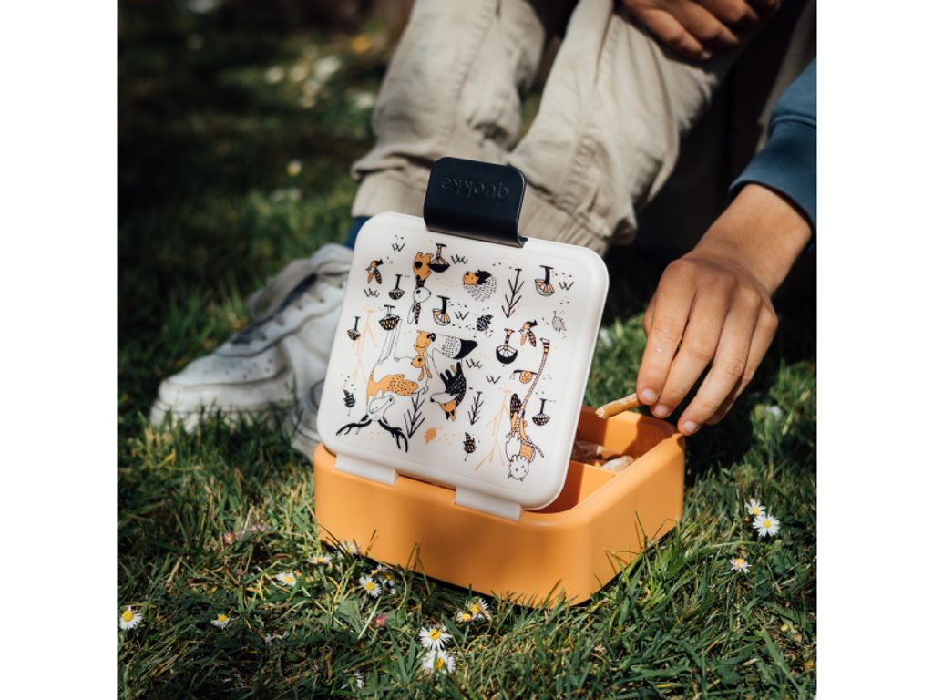 Dětský box na jídlo Quokka Twist Kids z vysoce kvalitního plastu je vhodný pro bezpečné přenášení svačiny do školy i na výlety. Box má stěny z dvojitého materiálu a spolehlivě těsnicí víko se zaklapávacím uzávěrem. Tři vnitřní přihrádky umožňují oddělit jednotlivé části svačinky. Box je vyroben z lehkého, odolného materiálu, který neabsorbuje pachy. Rozměry: 180 x 160 x 67 mm Složení: Polypropylen Neobsahuje BPA. Box není vhodný do myčky ani mikrovlnné trouby.