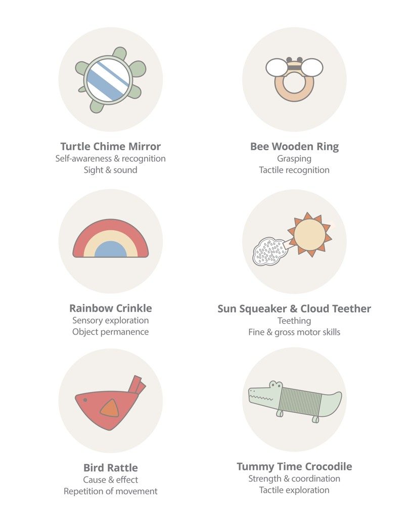Nechte objevovat vaše dítě rozličné tvary a zvuky s dekou na hraní Skip Hop Geometric Wonders. Je plná zábavných a interaktivních prvků, které pomáhají rozvíjet motorické dovednosti a podporují zvědavost dětí již od narození. Hračky, které jsou součástí, se dají odnímat z podložky a dítě si s nimi může hrát i mimo deku. Vlastnosti - 3 možnosti hraní: čas na bříšku, hraní na zádech, hraní vsedě - 5 zavěšených hraček pro interaktivní zábavu: zvonící želva se zrcadlem na břiše, dřevěná včelka s látkovým tělem, ptáček s rolničkou, šustící duha, pískací sluníčko s kousátkem ve tvaru obláčku - hrací podložka má geometrické tvary s roztomilými zvířátky a prošíváním - polštářek ve tvaru krokodýla pro čas strávený na bříšku s texturovaným tělem - vhodné pro děti od 0 měsíců - ideální dárek pro každé dítě, které začíná objevovat svět kolem sebe - neobsahuje BPA - certifikát FSC - lze prát v pračce - rozměry: 86,4 x 96,5 x 48,3 cm Varování: Před použitím odstraňte a správně zlikvidujte všechny obalové materiály. Nenechte děti hrát si s obalovými materiály. Vždy používejte pod dohledem dospělé osoby. Dodavatel: ags 92, s.r.o., Drahobejlova 2515/18, 190 00 Praha Česká republika info@ags92.com.