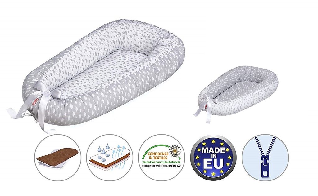 Scamp hnízdo kokosOBOUSTRANNÉ POUŽITÍ – KOKOSOVÁ VLOŽKA BRÁNÍ PRŮNIKU VLHKOSTI – PO VYJMUTÍ VLOŽKY LZE HNÍZDO PRÁT V PRAČCEHnízdečko nabízí několik způsobů využití, které v jakékoli situaci poskytují bezpečný a klidný spánek dítěti:• Hnízdečko může být použito v postýlce, kde miminku dodá pocit bezpeční, protože se cítí obklopeno hnízdečkem, jako bylo obklopeno v bříšku maminky. Někdy může postýlka působit jako příliš velké a prostorné místo, díky hnízdečku bude prostor menší a dítě tak bude spinkat klidnějším spánkem.• Pro bezpečný spánek v posteli rodičů.• Pro snadnější cestování, dítě se díky hnízdečku lépe přizpůsobí cizímu prostředí.• Hnízdečko můžete použít kdekoli, jako cestovní postýlku, přebalovací podložku, mantinel do postýlky, koše nebo kolébky.INOVACE – VÝVOJ- Hnízdečko s kokosovou vložkou poskytuje lepší a zdravější místo pro klidný spánek a odpočinek novorozence.- Kokosová vložka je uložena ve froté povlaku, který brání průchodu vlhkosti, chrání matraci před možnou kontaminací, ale přitom je prodyšný. Froté povlak je vybaven zipem, díky kterému jej lze sejmout a prát v pračce.- Kokosovou vložku je možné vyjmout, a poté je možné prát hnízdečko v pračce.- Boční mantinel obsahuje výplň ze silikonizovaného polyesterového vlákna, kterou je možné, díky zipu, dle potřeby doplnit nebo ubrat.Hnízdečko je ideální pro novorozence: od 0 do 6 měsícůHnízdečko je oboustranné, lze jej přetáčet a využívat obě strany.Boční mantinely mají šňůrky na utažení celého hnízda, díky tomu se vytvoří uzavřený ovál.Pro pevnější tvar má hnízdečko dva páry šňůrek: jeden může sloužit jako ozdobná stužka, druhý je pevnější, pro lepší zajištění a uchování potřebného tvaru. Pomocí šňůrek lze regulovat hnízdečko dle potřeby miminka.ROZMĚRY:Celková velikost: 55cm * 85cmLožná plocha: 30cm * 70cmVýška: 12 cmMATERIÁLY:Vnější potah: 100% bavlnaPodložka: kokos LATEXVýplň: 100% Antialergické silikonizované polyesterové vláknoVšechny použité materiály byly testovány.Certifikováno Ökotex Standard 100.