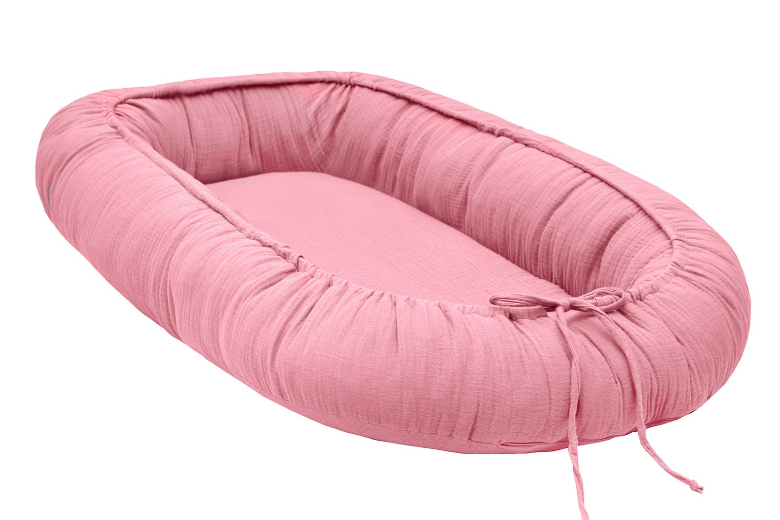 Mušelínové hnízdo pro miminko. Rozměr: 50×80 cm Lehací plocha: 28×60 cm   Materiál:Potah: 100% bavlna, mušelínVýplň: 100% silikonizované polyesterové kuličky Výrobek je… Zobrazit více