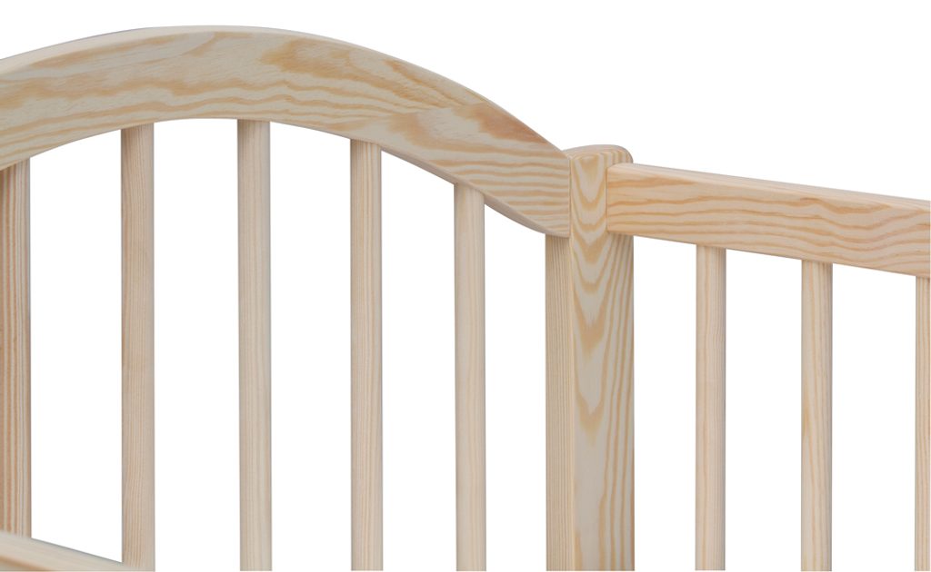 Postýlka je připravená pro montáž válendové bočnice, což umožňuje její další využití i v pozdějším věku dítěte.