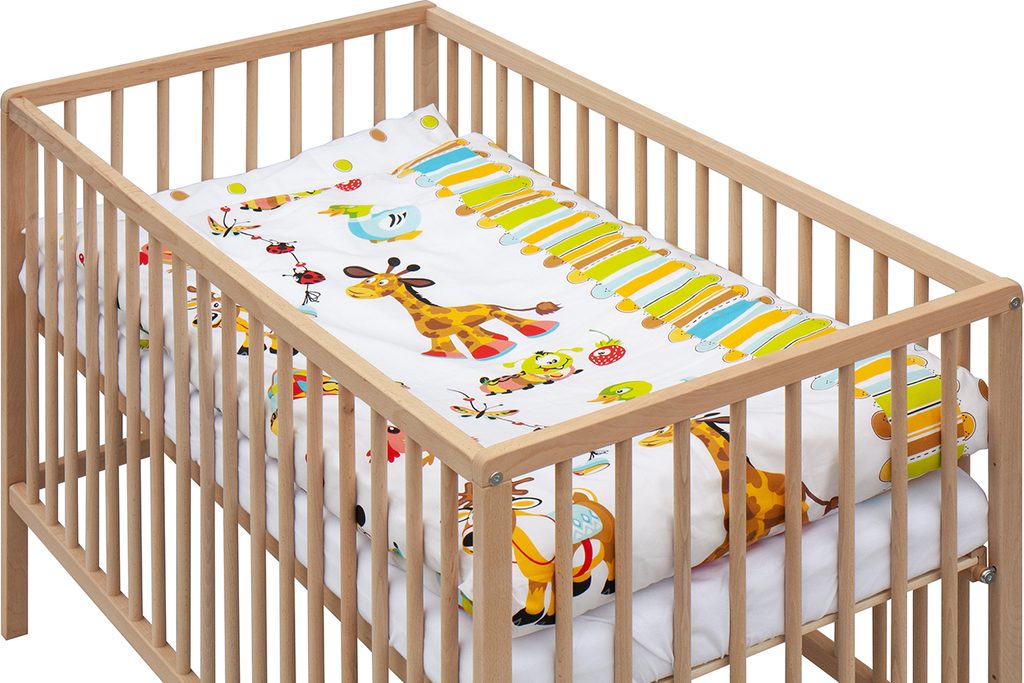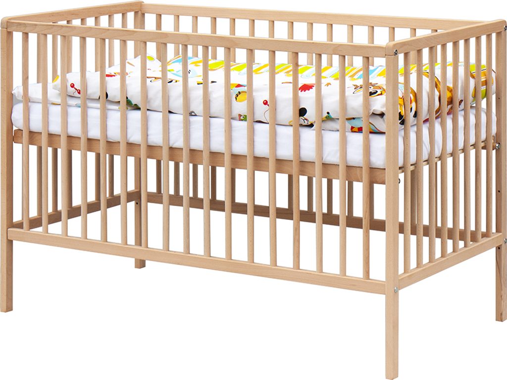 1. Dětská dřevěná postýlka 120 x 60 cm - přírodní, masiv buk, 3 vyndavací příčky, 2 polohy roštu,