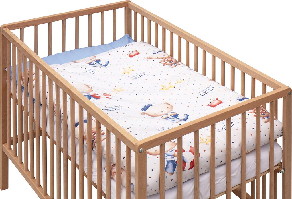 Jaké jsou rozměry postýlky a je kompatibilní s běžným povlečením? Ložná plocha je 120 × 60 cm – standardní rozměr, pro který je dostupné běžné dětské povlečení v každém obchodě. Prostěradlo i matrace jsou přímo součástí setu.