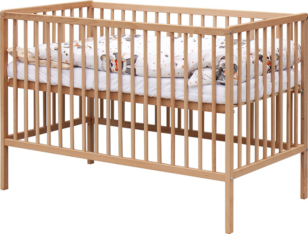 - Dřevěná postýlka 120 × 60 cm – masiv buk, přírodní povrch