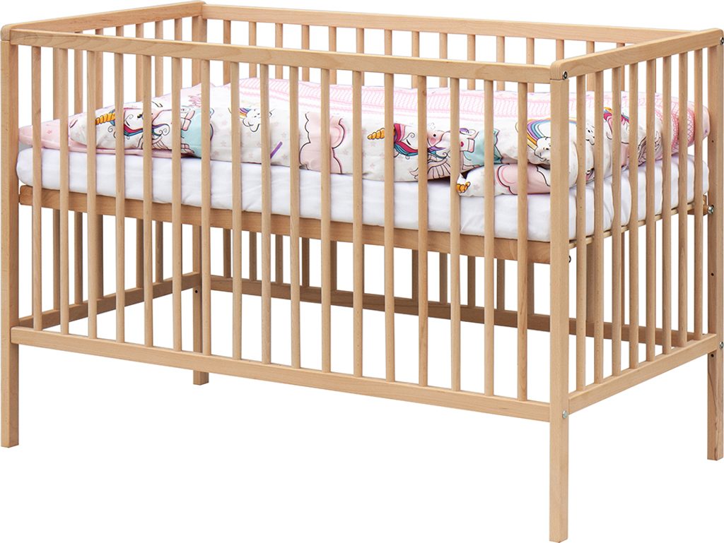- Dřevěná postýlka 120 × 60 cm – masiv buk, přírodní povrch