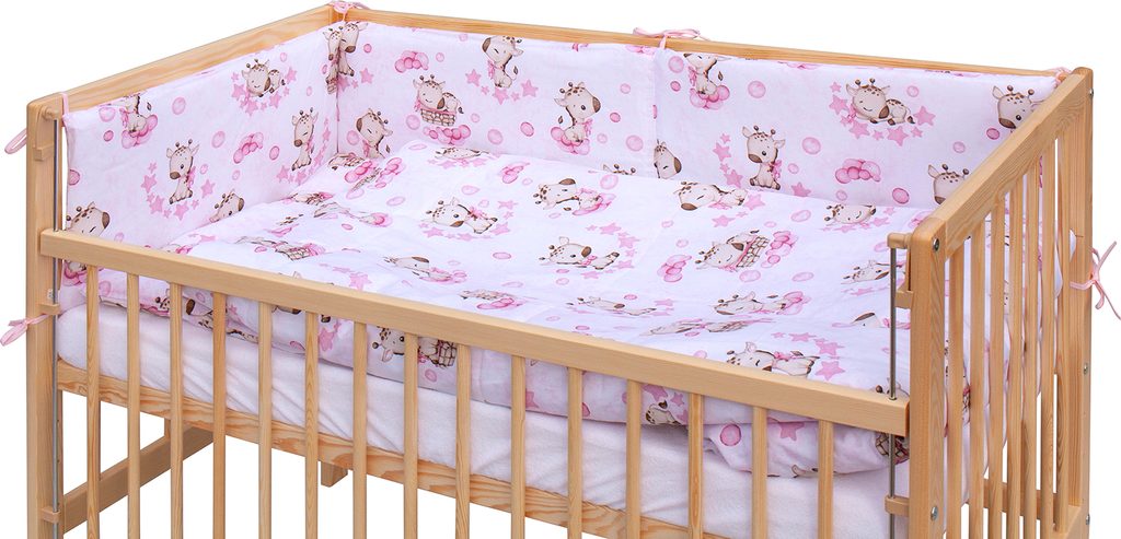 Dětská postýlka s kompletní soupravou povlečení a doplňků Scarlett Fiki Komplet obsahuje 1. Dětská dřevěná postýlka 120 x 60 cm - přírodní, masiv borovice,… Zobrazit více