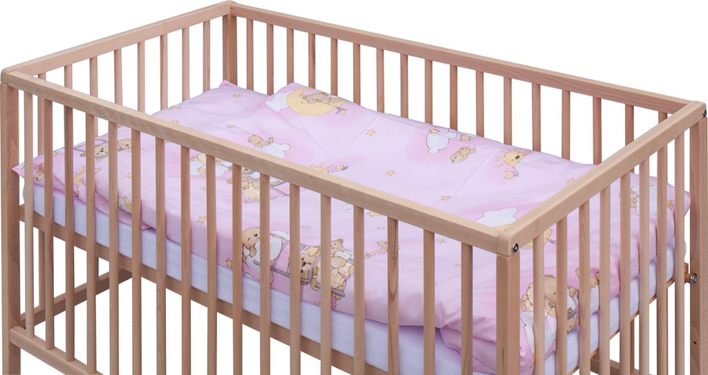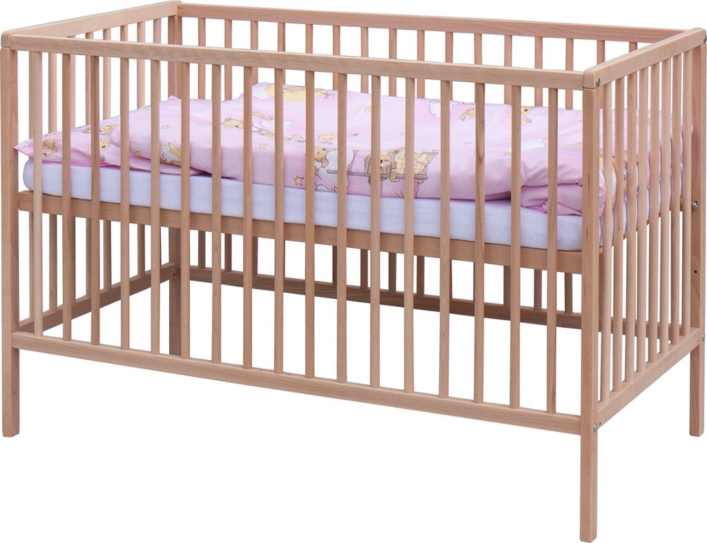 1. Dětská dřevěná postýlka 120 x 60 cm - přírodní, masiv buk, 3 vyndavací příčky, 2 polohy roštu