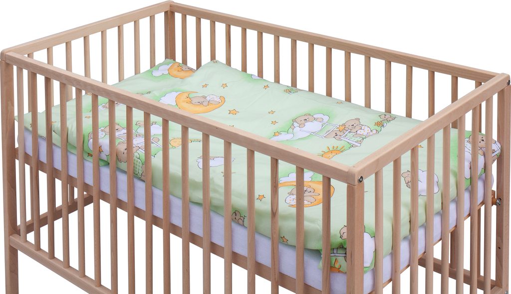 1. Dětská dřevěná postýlka 120 x 60 cm - přírodní, masiv buk, 3 vyndavací příčky, 2 polohy roštu