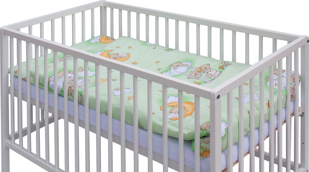 1. Dětská dřevěná postýlka 120 x 60 cm - bílá, masiv buk, 3 vyndavací příčky, 2 polohy roštu