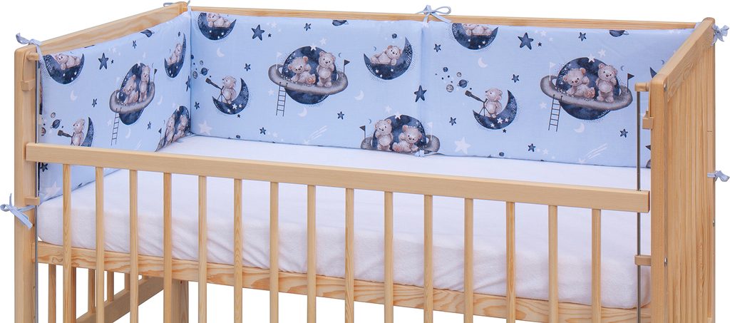 Mantinel do postýlky pro bezpečnější pohyb dítěte. Mantinel je do 1/2 postýlky 120 x 60 cm, výška 30 cm. Přivazuje se k tyčkám. Pokud by Vám nestačil mantinel do půlky postýlky, lze si dát dva proti sobě a mít tak ochranu po celé postýlce.