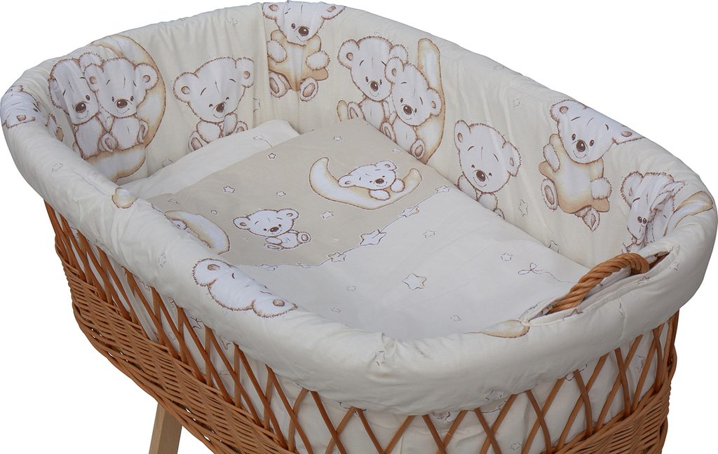 Mojžíšův koš je ideální volbou pro novorozence do přibližně 6 měsíců věku. Proutěný materiál přirozeně reguluje teplotu a vlhkost, takže miminko nepřehřívá ani neprochladne. Kompaktní rozměry umožňují košík snadno přenášet po bytě – miminko tak může být vždy blízko vás, ať jste v obývacím pokoji nebo ložnici.