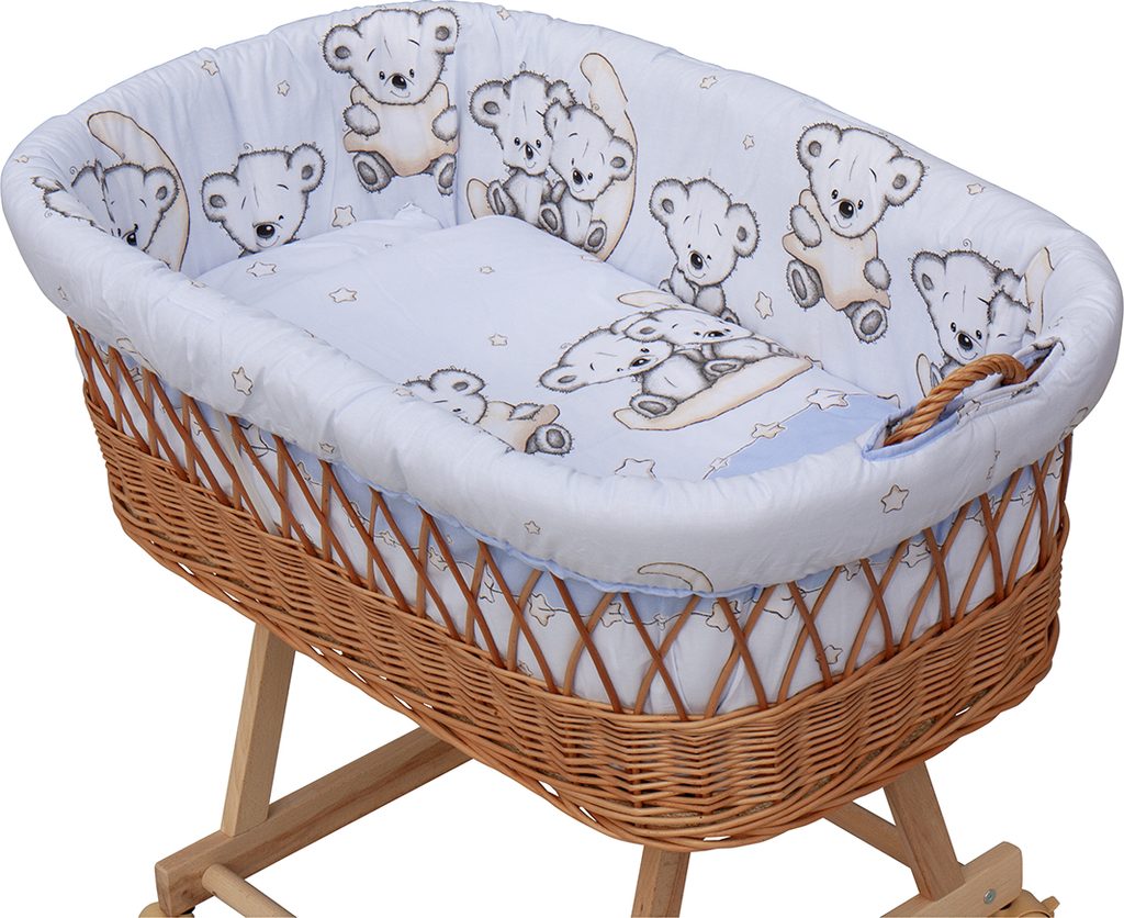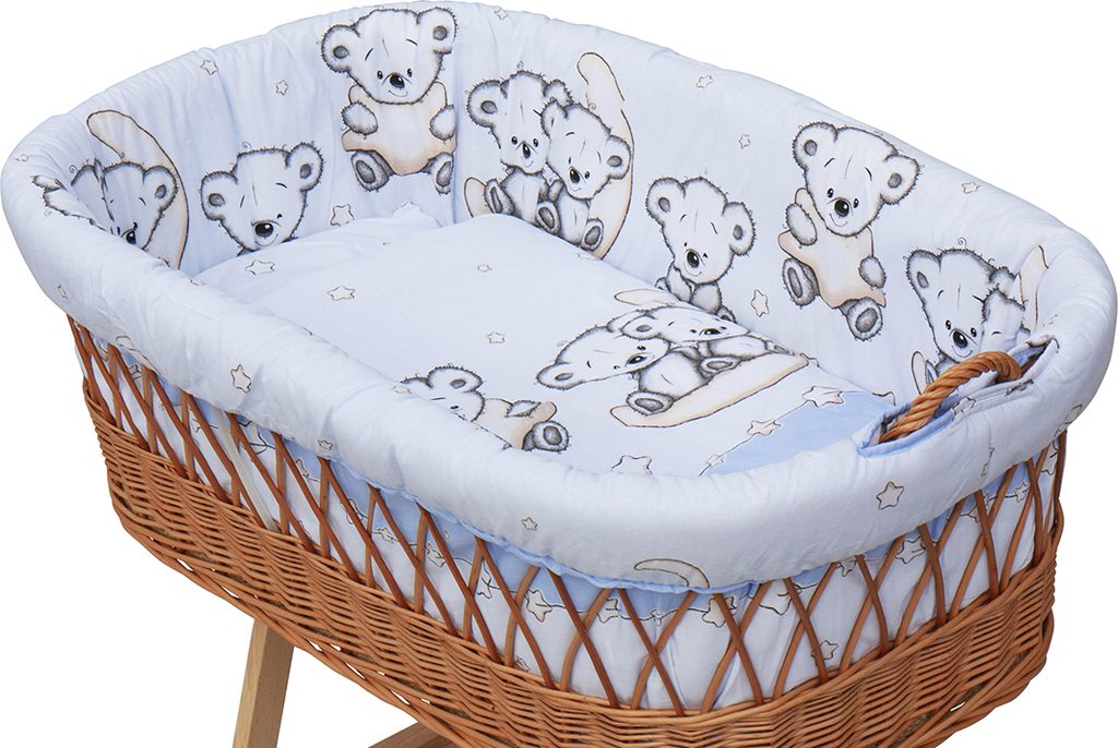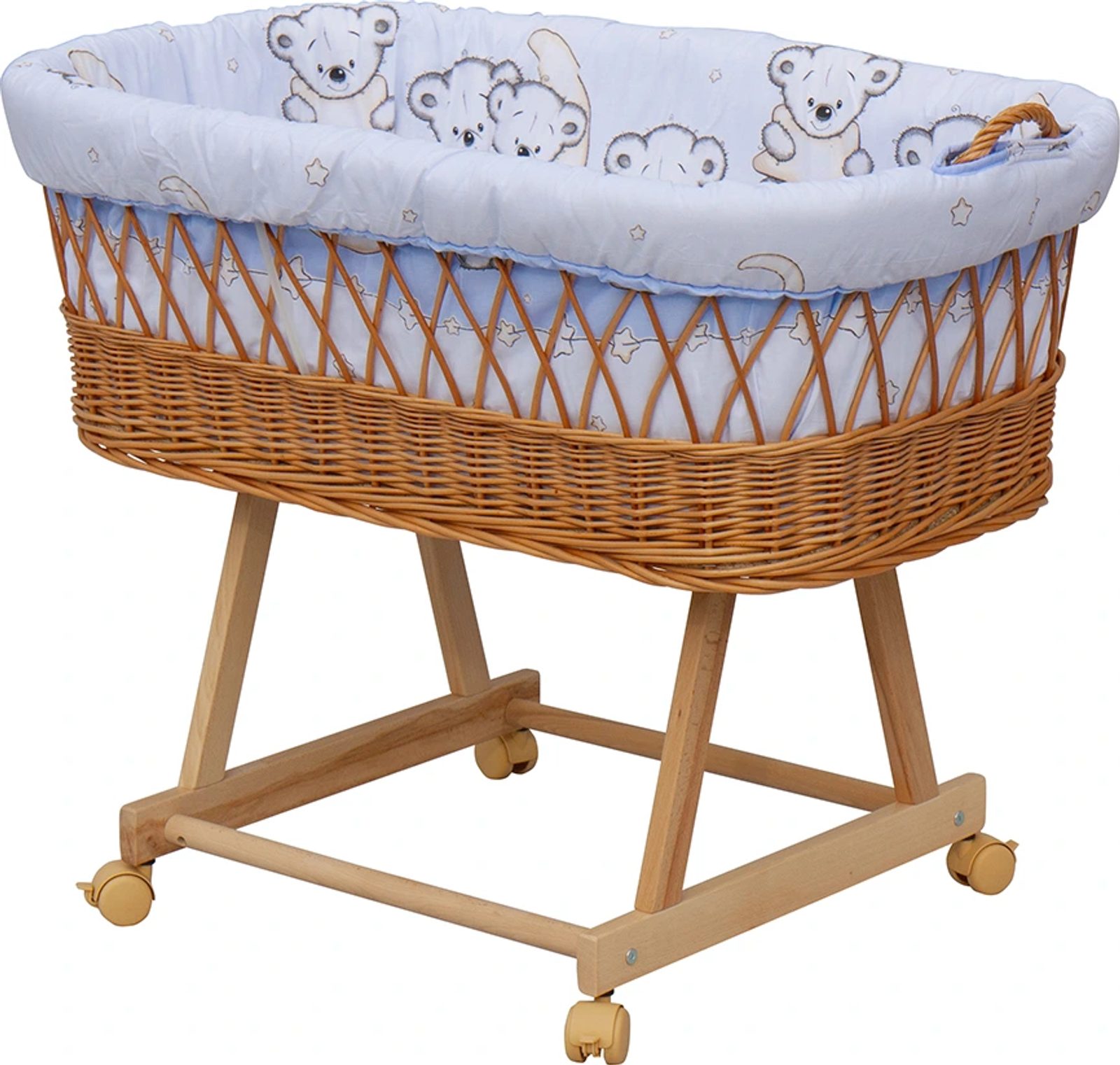 Mojžíšův koš je ideální volbou pro novorozence do přibližně 6 měsíců věku. Proutěný materiál přirozeně reguluje teplotu a vlhkost, takže miminko nepřehřívá ani neprochladne. Kompaktní rozměry umožňují košík snadno přenášet po bytě – miminko tak může být vždy blízko vás, ať jste v obývacím pokoji nebo ložnici.