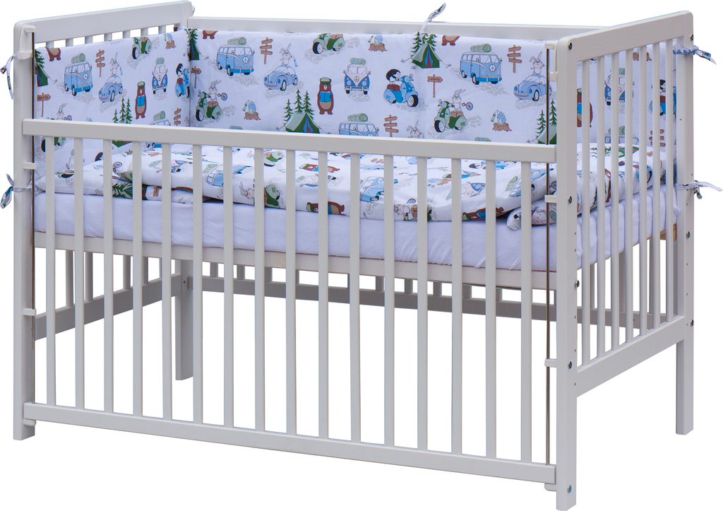 Dětská postýlka s kompletní soupravou povlečení a doplňků Scarlett Fany Komplet obsahuje 1. Dětská dřevěná postýlka 120 x 60 cm - bílá, masiv borovice, stahovací… Zobrazit více