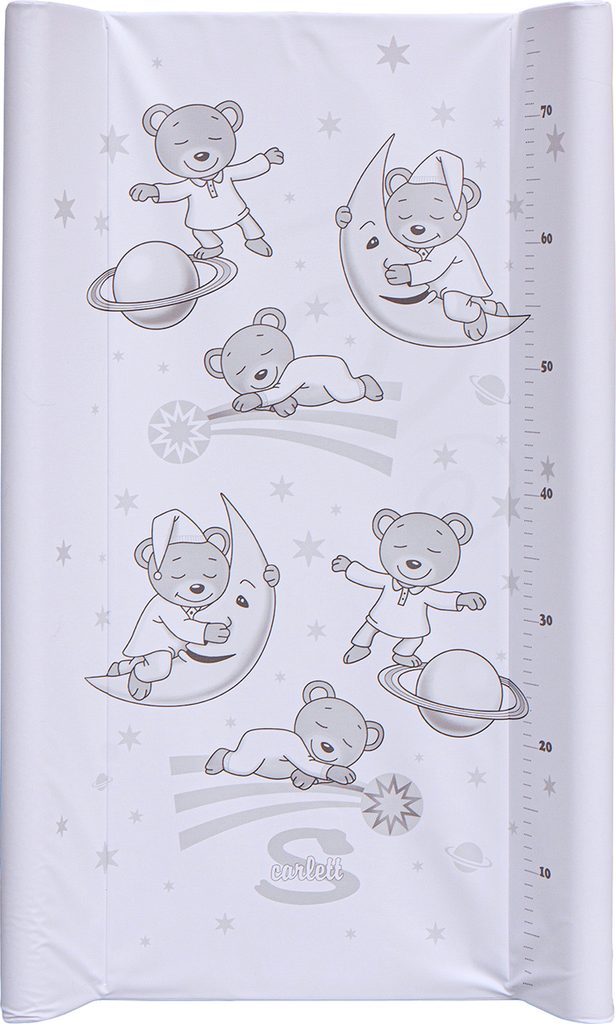 Přebalovací podložka s kapsou na spodní straně a profilovanými okraji z kvalitním PVC potahem bez ftalátů, vyplněná molitanem. Tato podložka je určena na komody s výklopnou deskou. Motivy přebalovacích podložek se často obměňují.