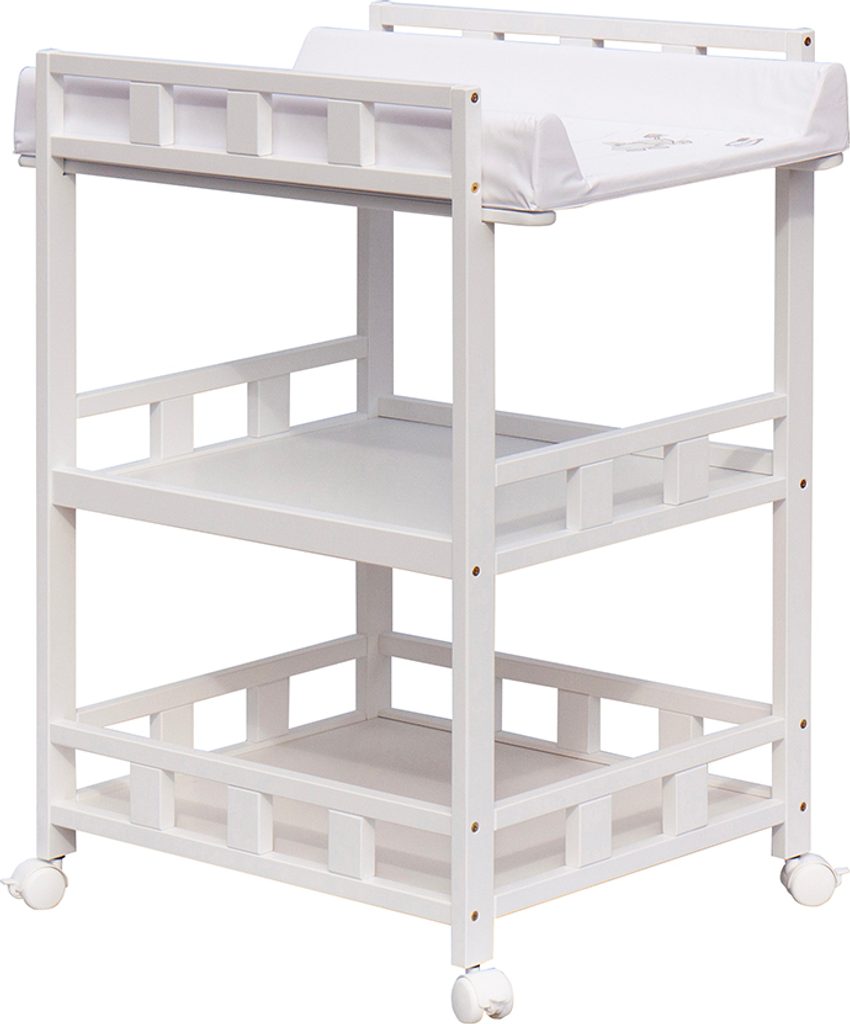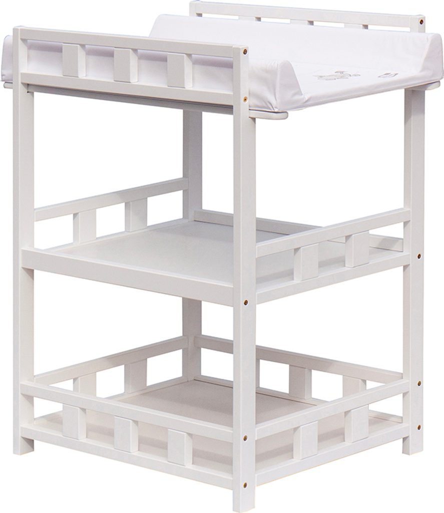 Praktický přebalovací pult se dvěmi policemi z HDF desky. Vrchní přebalovací pult z polyuretanu potažený omyvatelným PVC, vyztužený MDF deskou.