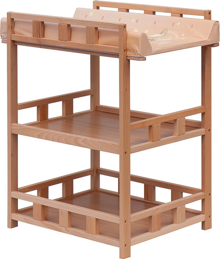 Praktický přebalovací pult se dvěmi policemi z HDF desky. Vrchní přebalovací pult z polyuretanu potažený omyvatelným PVC, vyztužený MDF deskou.