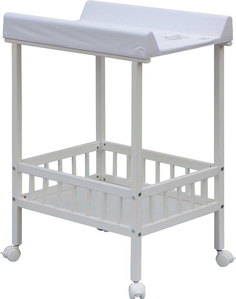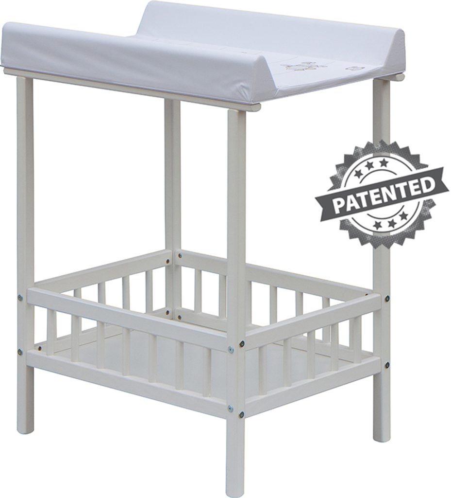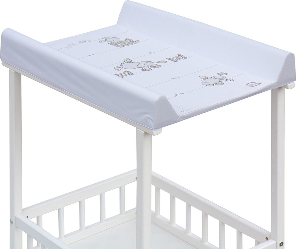 Praktický přebalovací pult se dvěmi policemi z HDF desky. Vrchní přebalovací pult z polyuretanu potažený omyvatelným PVC, vyztužený MDF deskou.