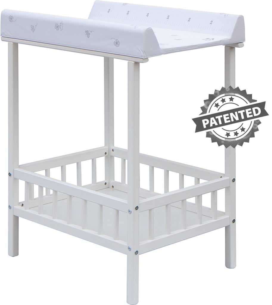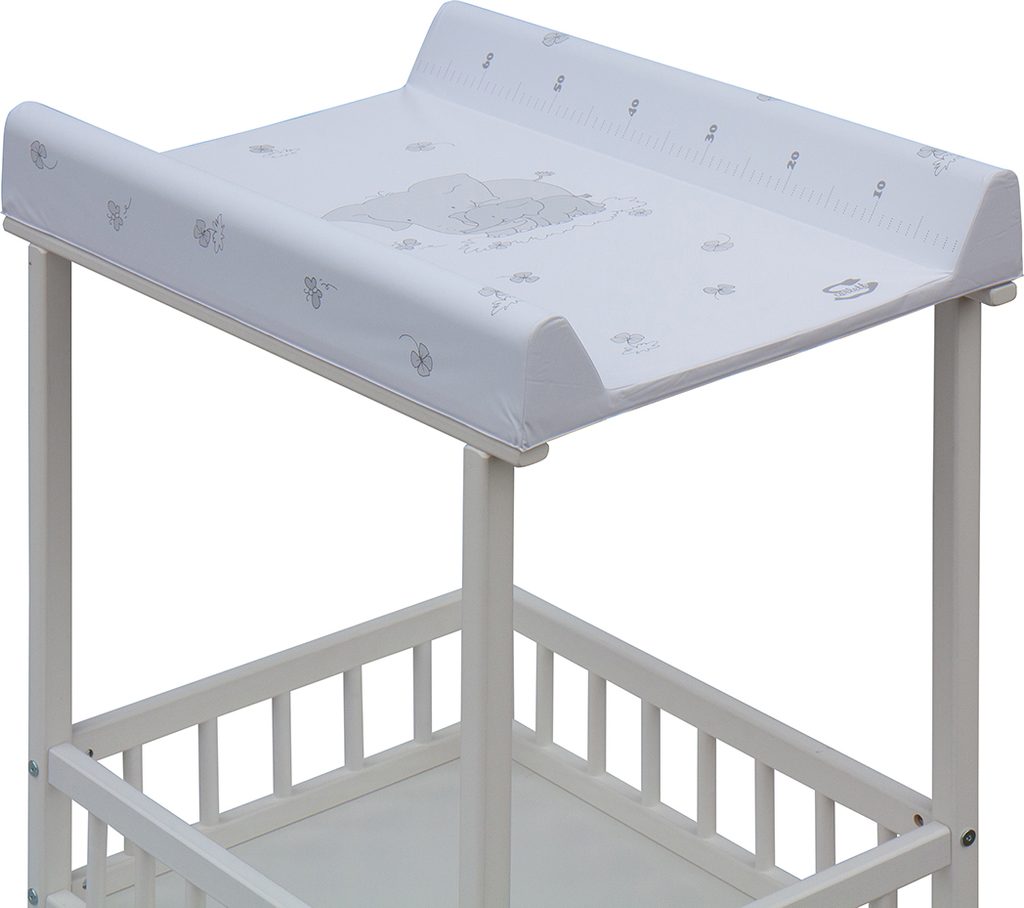 Praktický přebalovací pult se dvěmi policemi z HDF desky. Vrchní přebalovací pult z polyuretanu potažený omyvatelným PVC, vyztužený MDF deskou.