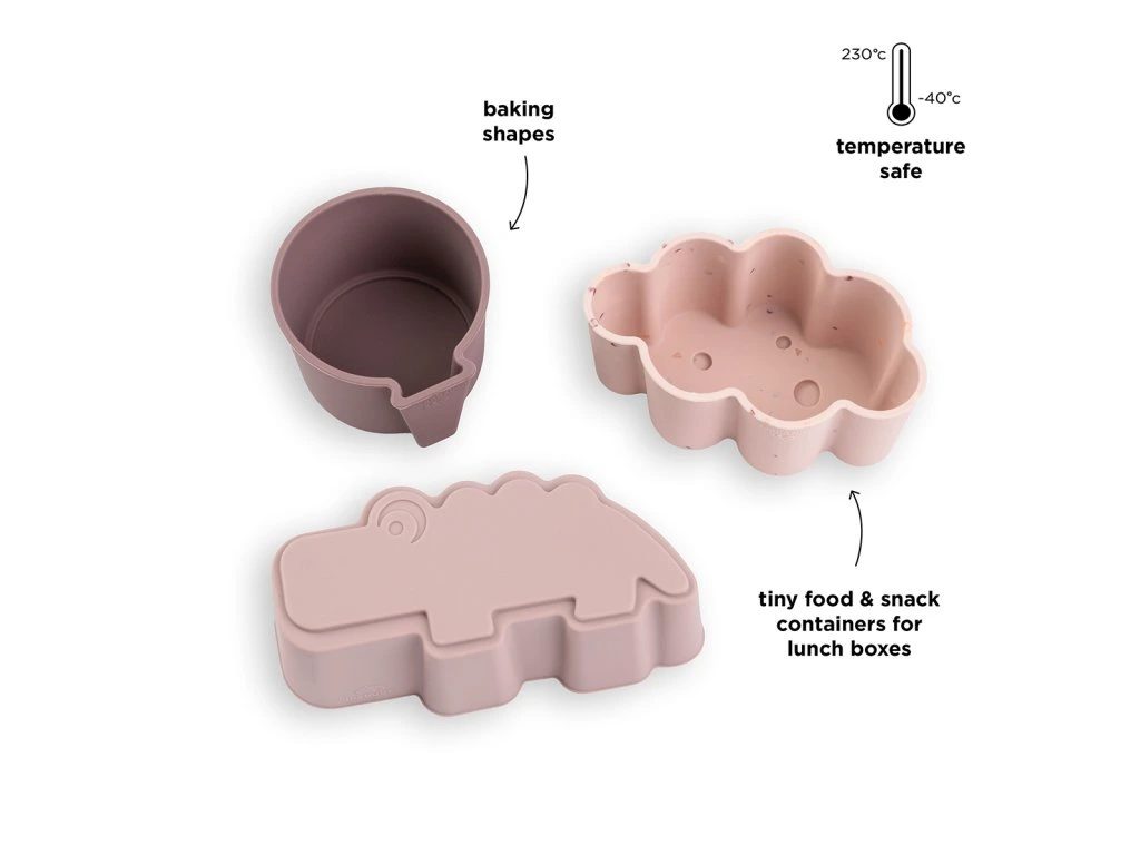 Zábavné silikonové mističky jsou skvělé pro skladování potravin a jako mističky, které lze vložit do svačinové krabičky. Mohou být použity i pro pečení malého muffinu.