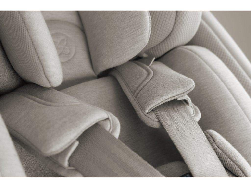 Měkký bambusový potah v kombinaci s prodyšnou žerzejovou látkou a vestavěný ventilační systém pomáhají regulovat teplotu dítěte a zajišťují příjemné prostředí během každé jízdy. Celá autosedačka splňuje nejnovější evropskou normu R129/04 a byla testována i nad rámec předepsaných standardů.