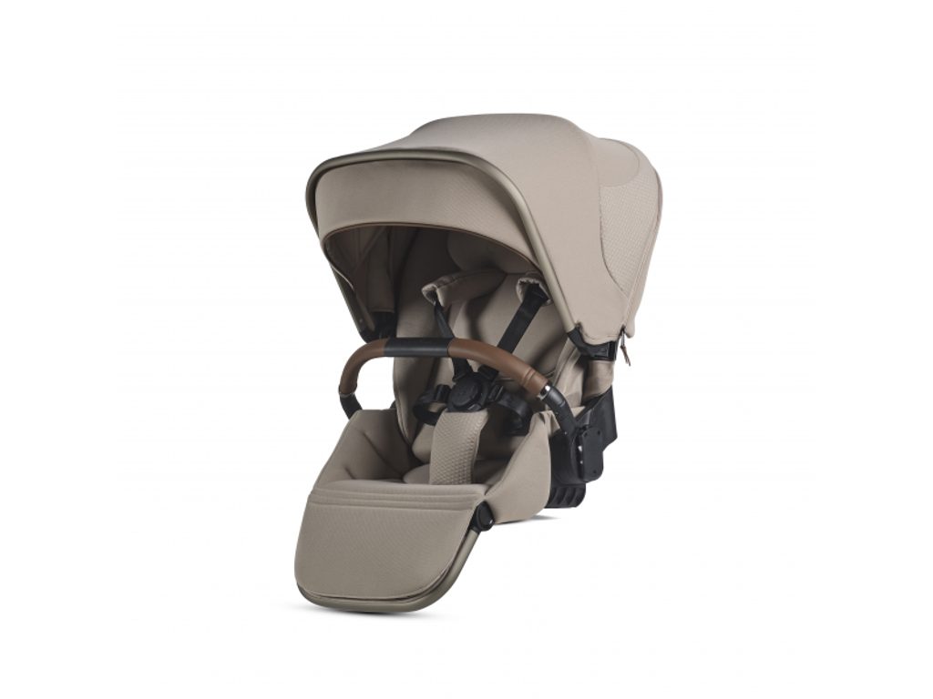 Pohodlný sedák s měkkým polstrováním nabízí možnost nastavení opěrky nohou i zádové části až do úplného lehu. Sedák lze uchytit po i proti směru jízdy, což vám umožní flexibilitu podle věku dítěte. Bezpečnostní pásy Genius s magnetickou přezkou ušetří čas při každém poutání a díky snadnému posuvnému mechanismu je rychle přizpůsobíte růstu dítěte bez složitého provlékání. Součástí je i odnímatelné madlo a rozšiřitelná stříška s UPF 50+, která chrání proti větru i slunci.