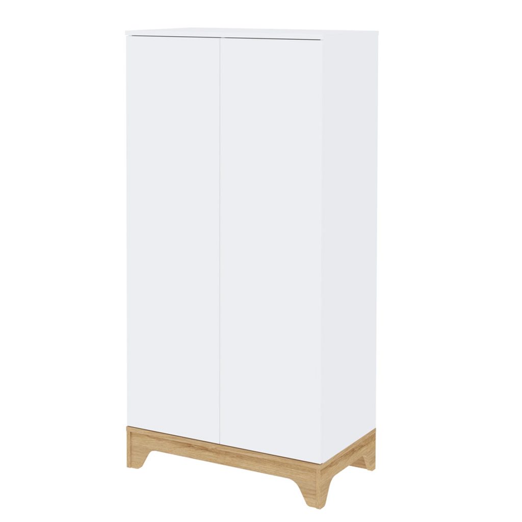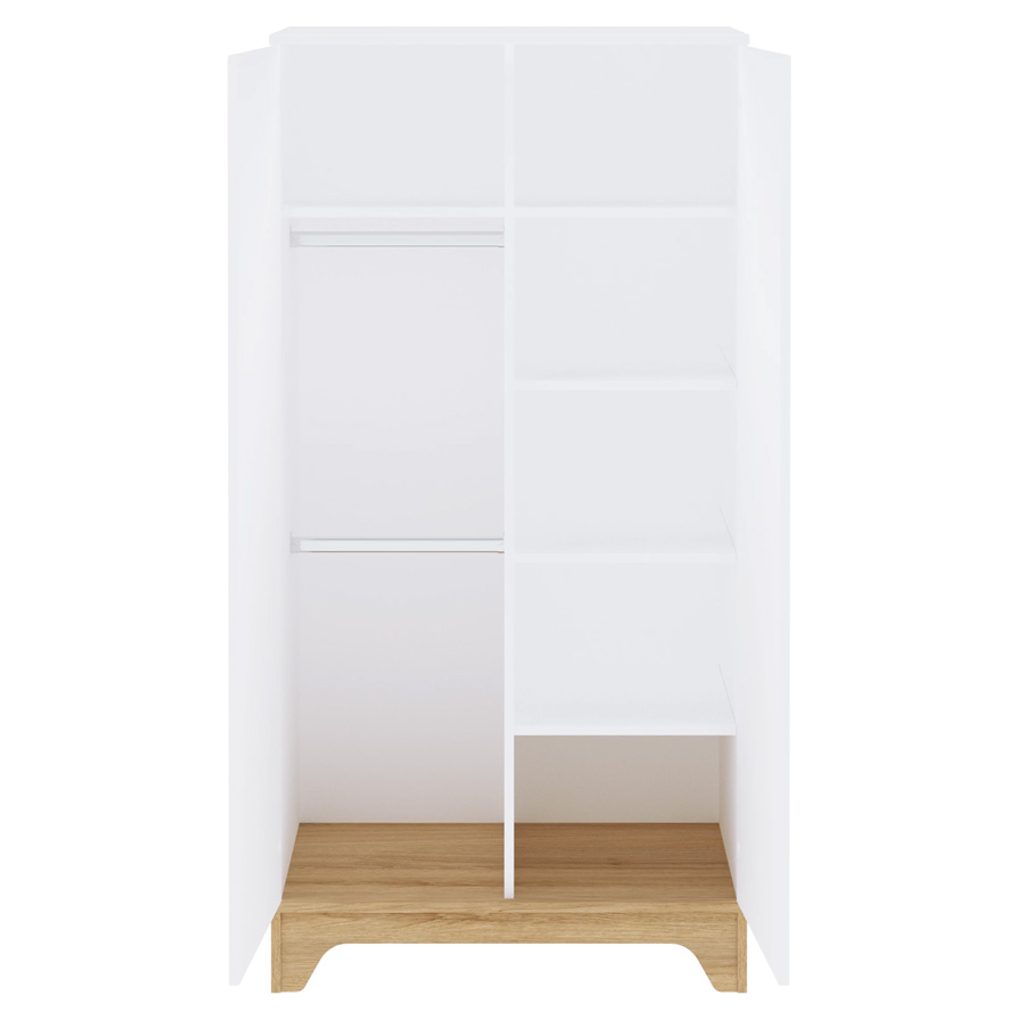 Dvoudílná šatní skříň je skvělou volbou pro uložení prvních věcí vašeho dítěte. Je navržena tak, aby dokonale ladila s ostatními kusy nábytku z kolekce Lumina White, což vám umožní vytvořit dětský pokoj, který bude nejen praktický, ale také esteticky příjemný a nadčasový. Vnitřní uspořádání skříně je flexibilní a můžete si zvolit mezi závěsnými tyčemi nebo policemi, přičemž v případě potřeby lze přidat i další police pro lepší organizaci.