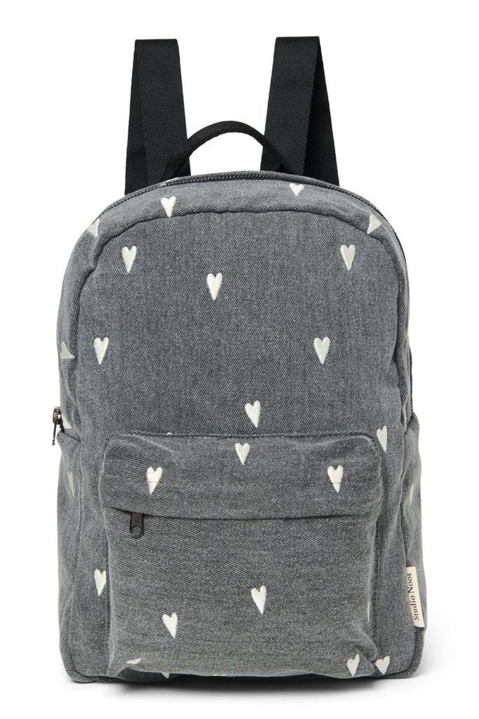 Studio Noos Denim Midi batůžek s přední kaspou Grey Hearts