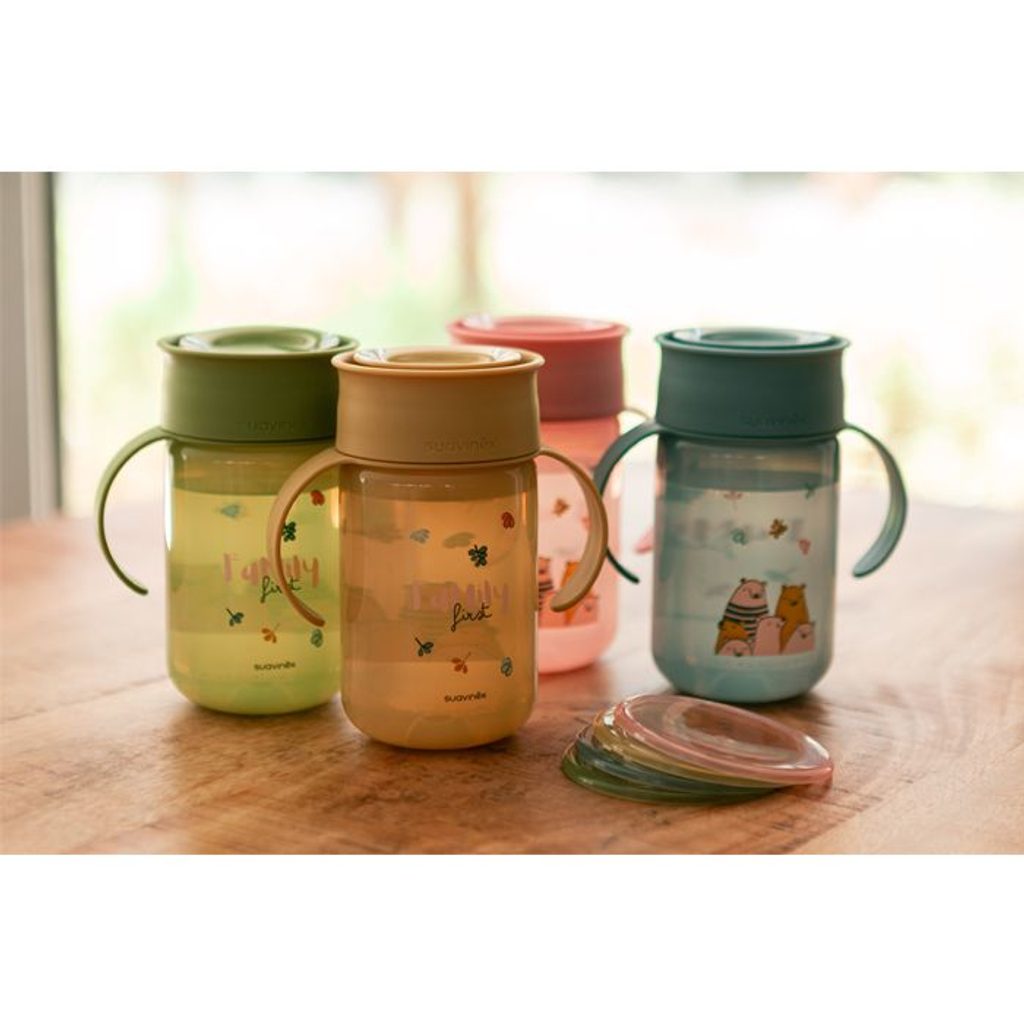 Důležitým krokem ve vývoji dětí je naučit se pít bez Vaší pomoci. 360° hrníček řady BEAR od značky Suavinex je vhodný pro učení samostatného pití pro batolata a skvělý pro přechod ke klasickému hrnečku. S tímto učícím hrnečkem si vaše dítko zlepší svoje schopnosti, protože hrneček umožňuje pít bez rozlití tekutiny z jakékoliv části horního okraje díky ventilu. Nepropustné víko zabrání vylití tekutiny při převržení hrnečku a vytéká pouze při kontaktu s dětskými rty. Hrneček má držadla vhodná pro drobné dětské ruce, které umožní její snadné uchopení.