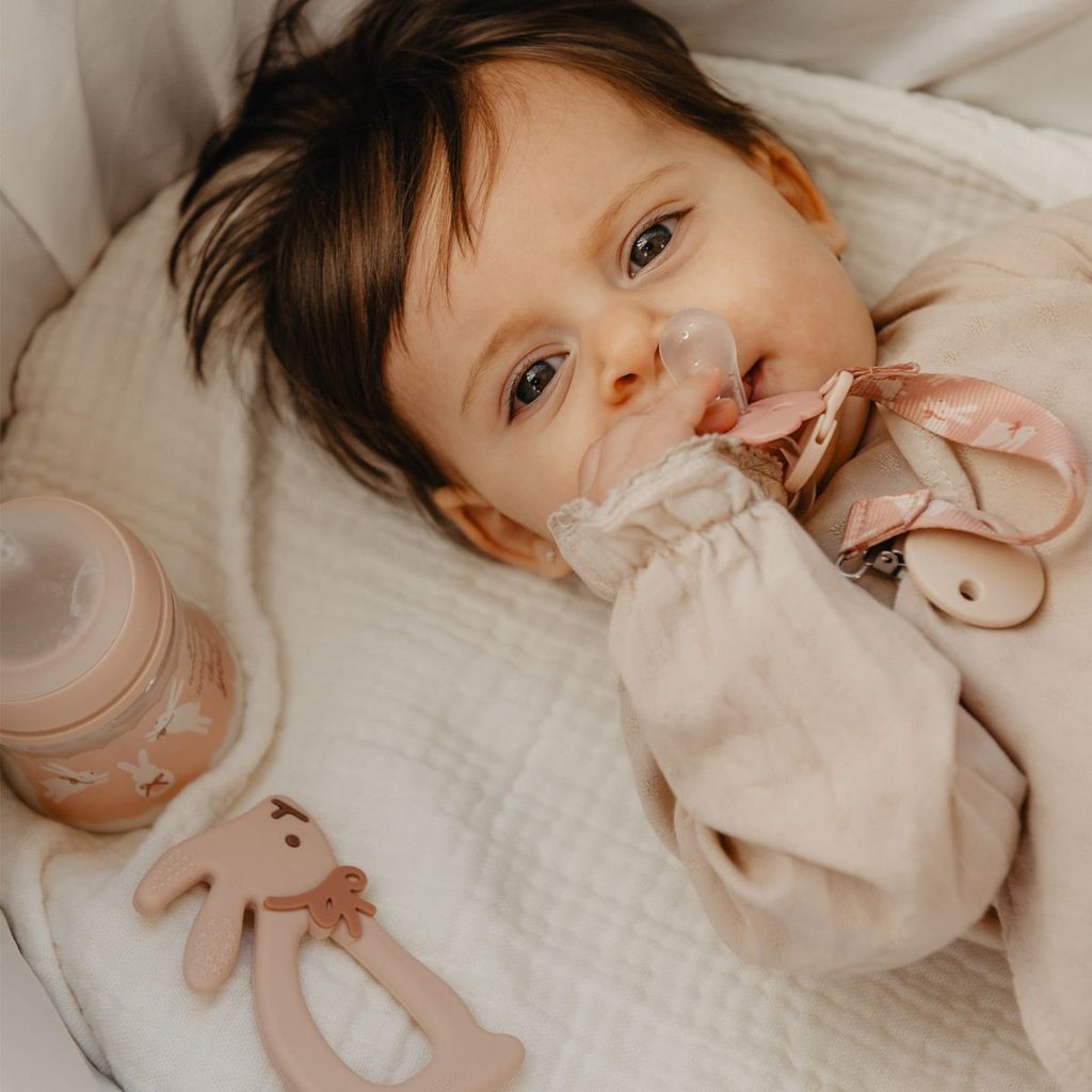 • Silikonové kousátko (od narození) – pro úlevu při prořezávání zoubků a senzorické poznávání