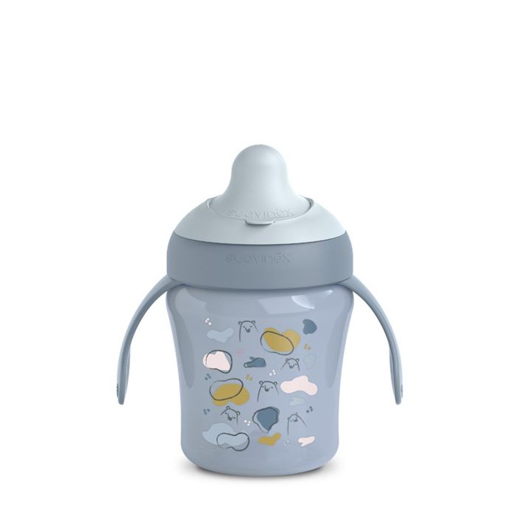 Suavinex Nerozlitný hrníček BEAR 200 ml modrý