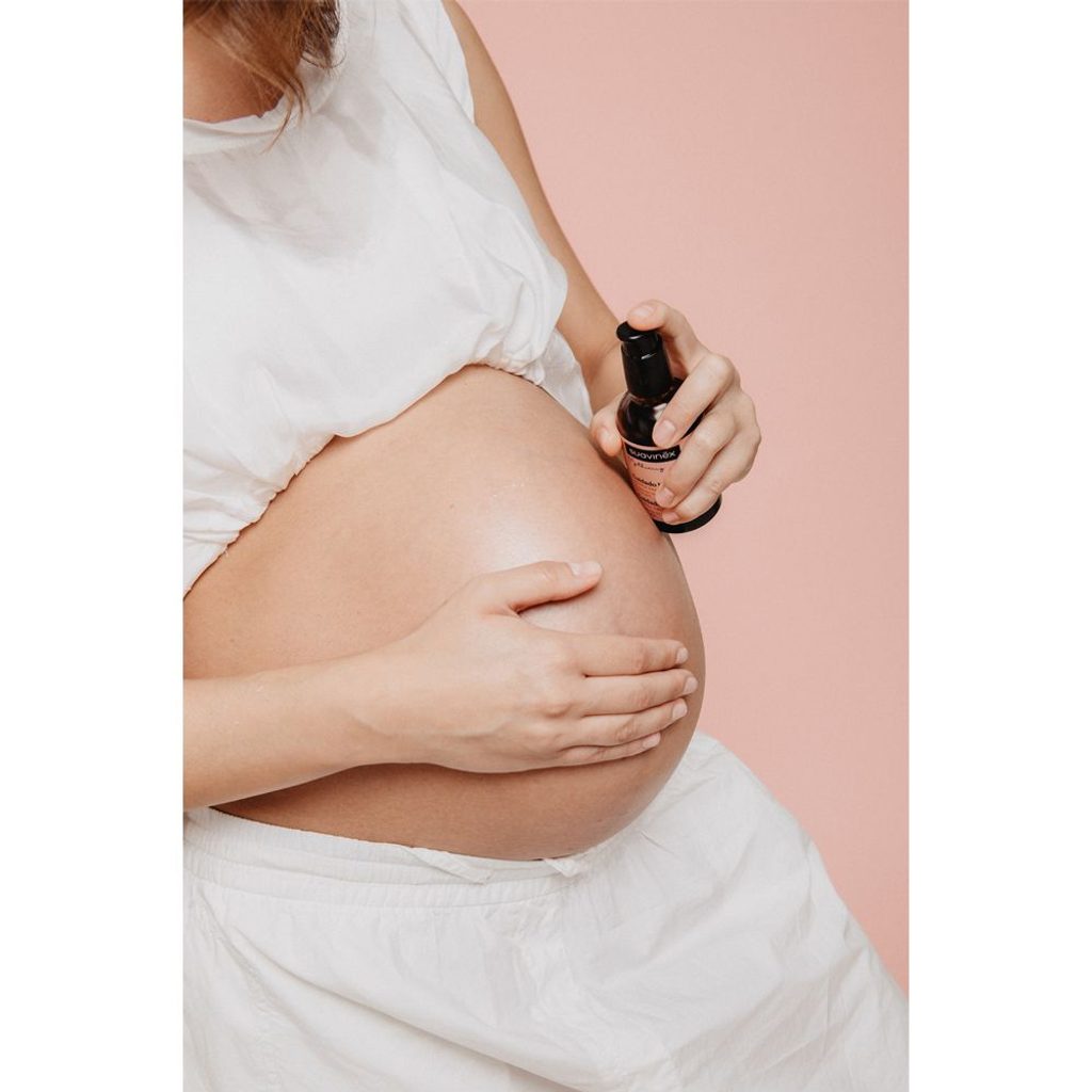 Věrný spojenec při péči o pleť v období těhotenství a po porodu. Olej s vysokou tolerancí a jemnou a hedvábnou texturou napomáhající k zabraňování tvorbě strií vznikajících při změnách tělesné hmotnosti především v období těhotenství. Obohacen o směs olejů (mandlový, pupalkový a olej s pšeničných klíčků), jejichž synergický účinek posilňujeme kolagenová a elastinová vlákna, jímž vděčíme za napínání a elastičnost pleti. Pleť se stává pevnější, zářivější a krásnější již po prvním použití.