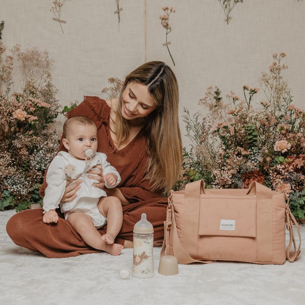 Perfektní kombinace elegance a funkčnosti - tato malá přebalovací taška je nepostradatelným pomocníkem pro maminky na cestách.