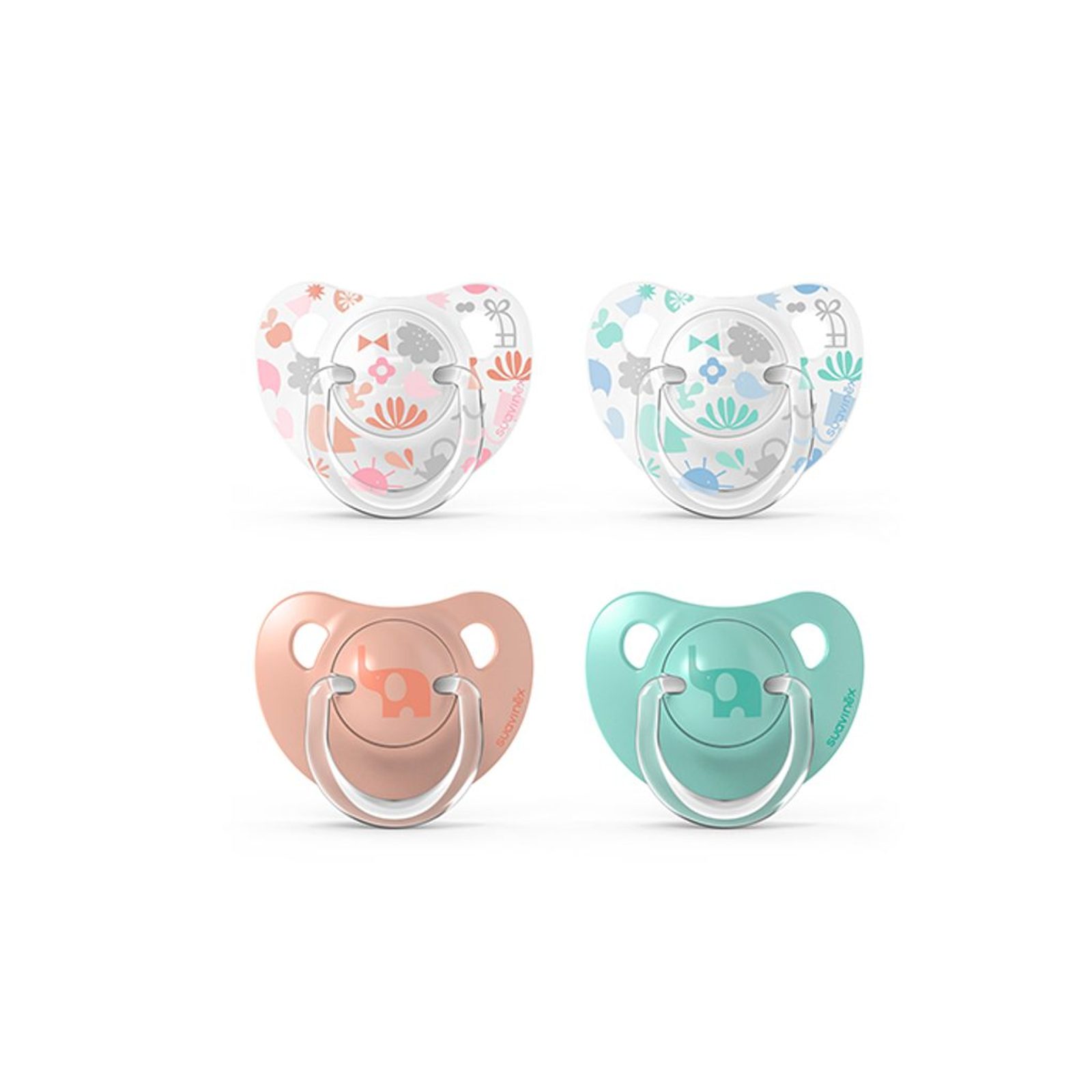 Dudlík je velkým pomocníkem pro klid Vašeho miminka, ať již při spánku nebo vycházce. Je dokázáno, že sání dudlíku uvolňuje endorfin, takzvaný hormon štěstí, který přináší miminku příjemný pocit, který ho uklidňuje a konejší. Dopřejte miminku dudlík místo prstů či pěstičky, protože tato varianta může velmi porušit dentální vývoj. Veškeré savičky i dudlíky jsou podpořeny a vyráběny ve spolupráci s Asociací španělských dětských ortodontistů a respektují přirozený vývoj dásní, zubů i patra dítěte. Barvy použité pro dekorování výrobků značky Suavinex jsou přírodní a netoxické.