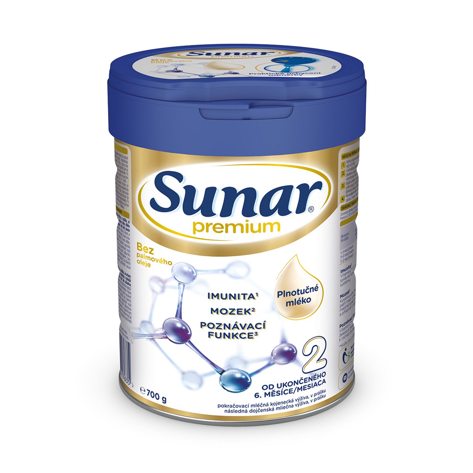 Pokračovací kojenecké mléko Sunar Premium 2 je určené pro kojence od ukončeného 6. měsíce do 12 měsíců, kteří nemohou být kojeni. Z plnotučného mléka a smetany a obsahuje unikátní kombinaci látek přirozeně se vyskytujících v mateřském mléce.